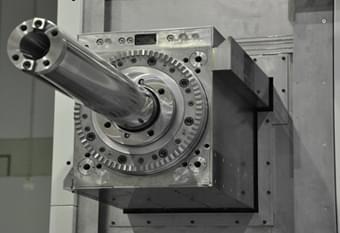 滑枕式移動(dòng)主軸:這種主軸結(jié)構(gòu)可以進(jìn)行滑枕大行程對(duì)工件加工,比鏜桿移動(dòng)式結(jié)構(gòu)達(dá)到更深的孔或面的加工。這是由于在滑枕移出的基礎(chǔ)上主軸在滑枕內(nèi)繼續(xù)移出,總行程一般可達(dá)1000mm以上。由于滑枕截面是矩形結(jié)構(gòu),滑枕行程移動(dòng)的間隙類似于機(jī)床矩形導(dǎo)軌其間隙可調(diào),保證了滑枕運(yùn)動(dòng)中的高剛性和可重復(fù)性。因此,它的導(dǎo)向性能和移動(dòng)精度優(yōu)于純鏜桿移動(dòng)式主軸結(jié)構(gòu)。