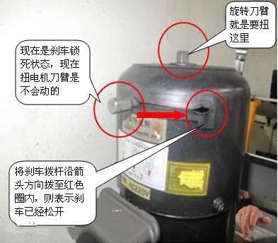 2.松開(kāi)電機(jī)上的剎車裝置(沒(méi)松開(kāi)是扭不動(dòng)電機(jī)手臂的),用活動(dòng)扳手旋轉(zhuǎn)電機(jī)上的外六角,一般旋轉(zhuǎn)的方向和刀臂的卡死的方向相同,總之就是讓刀臂脫離主軸刀具。在上面的人旋轉(zhuǎn)刀臂的同時(shí),下面的人一定要注意刀臂旋轉(zhuǎn)的方向,及時(shí)提醒上面操作的人,因?yàn)樗床坏綄?shí)際情況的。