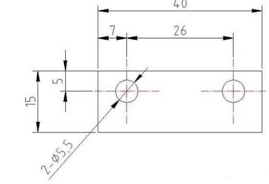 一塊厚10MM的45號鋼板上鉆兩個Φ5.5的孔。(選用Φ10的點鉆及Φ5.5的鉆頭,坐標(biāo)原點在左上角)