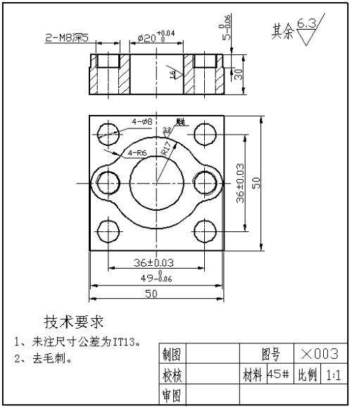 5. 填寫標(biāo)題欄,校核,完成零件工作圖。
