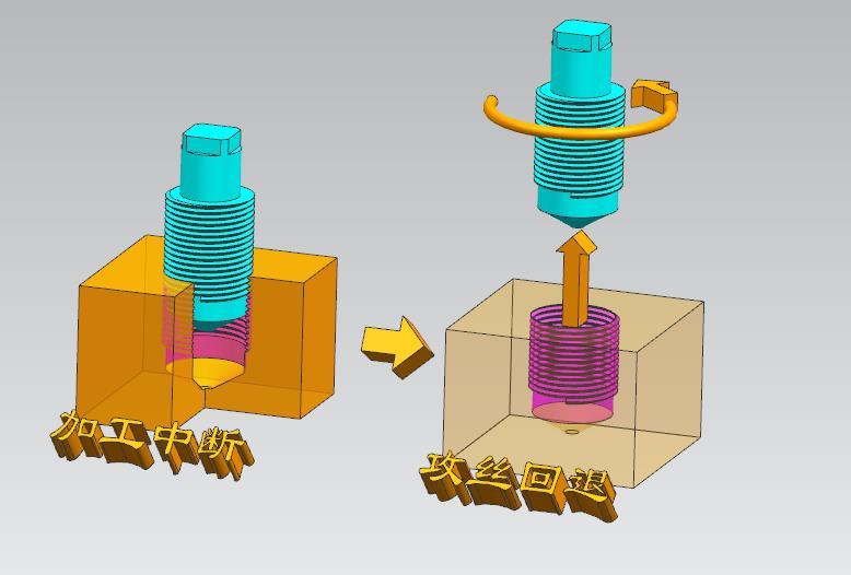 剛性攻絲回退:通過信號觸發(fā)或程序指令能將意外卡在工件內(nèi)的絲錐自動退出。